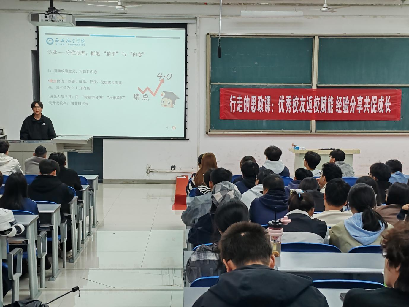 西安邮电大学研究生刘智恒则以《大学进化论:从适应到卓越》为题,聚焦新生们关注的核心问题展开分享。他从大学阶段的“机遇与挑战并存”现状切入,系统讲解时间规划的科学方法,结合自身备考经验拆解英语四六级的复习技巧,细致指导简历制作的要点与竞赛参与的选择策略,更毫无保留地分享了考研上岸的备考心得与心态调整方法。其干货满满的内容,帮助新生们快速掌握高效学习路径,助力大家更快适应大学专业学习的节奏。