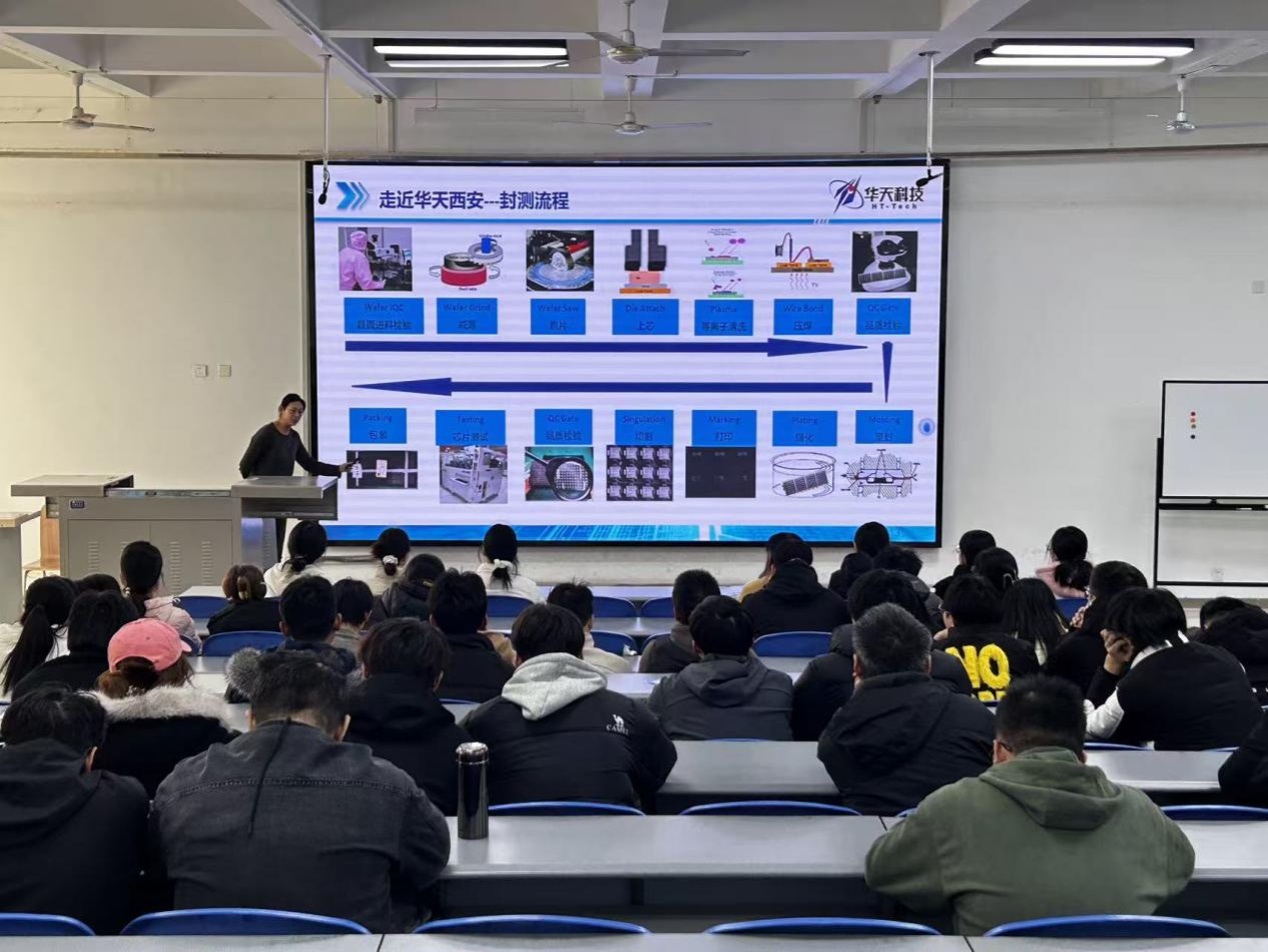 为深化校企合作,助力2026届毕业生高质量就业,11月18日下午,太阳成集团tyc1286在阶梯四教室成功举办华天科技(西安)有限公司专场招聘宣讲会,并于阎教1231会议室顺利完成面试工作。就业辅导员谭泽楷及学院就业指导与服务中心工作人员全程参与组织。本次招聘吸引了人工智能、电气工程及其自动化、电子信息工程、机械设计制造及其自动化等专业90余名学生参加。